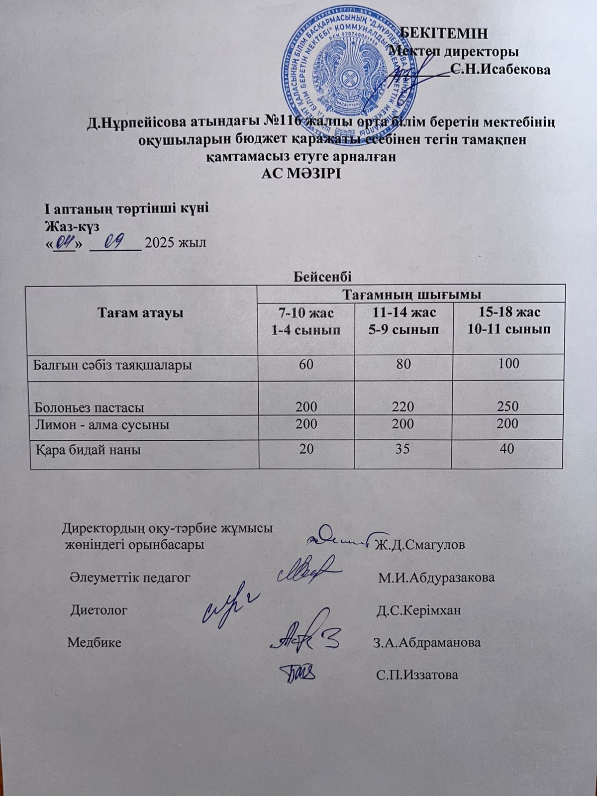 Ас мәзірі » «Д.Нұрпейісова атындағы №116 жалпы орта білім беретін мектебі» КММ