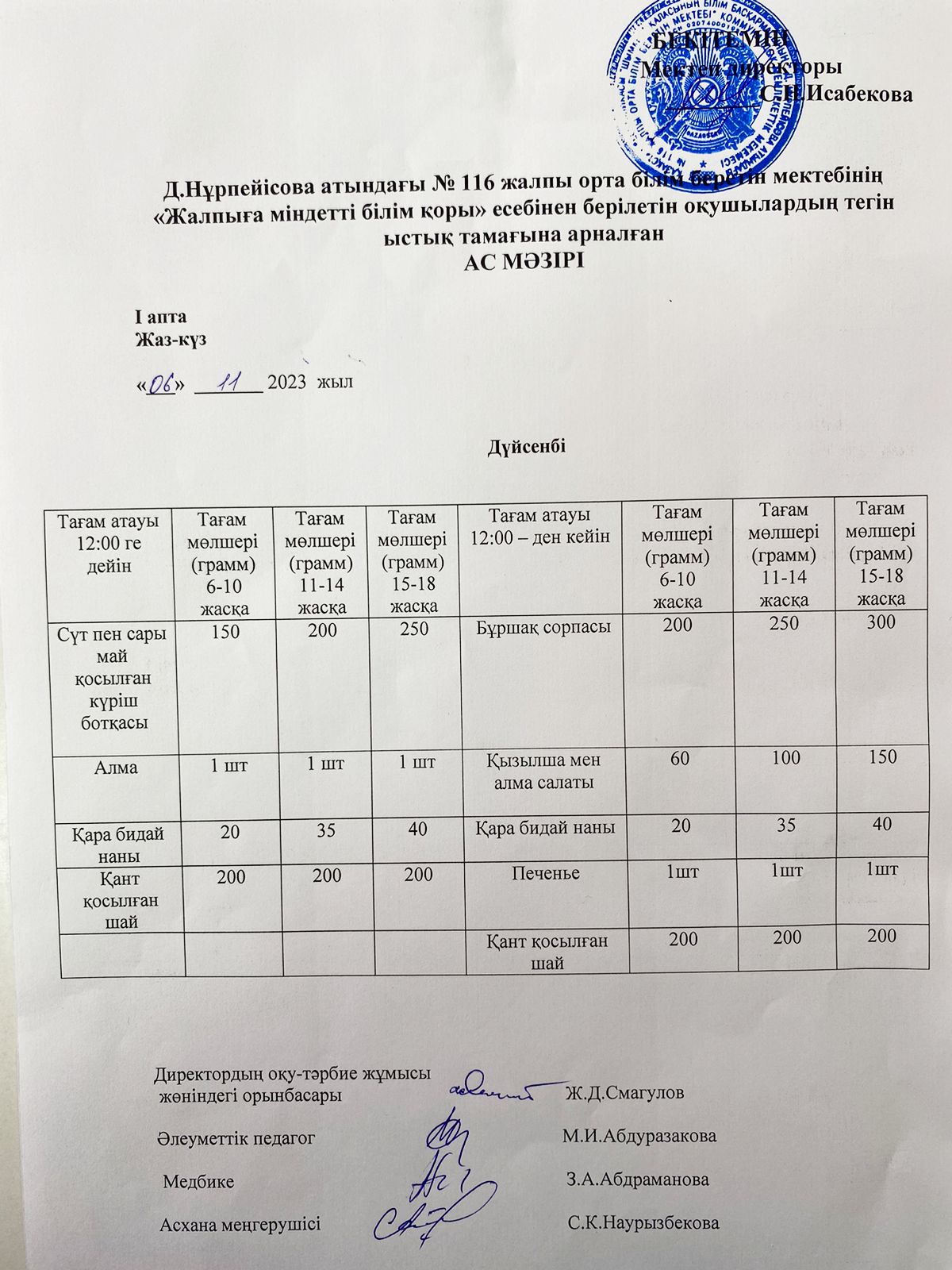 29 сентябрь 2023 Ас мәзірі