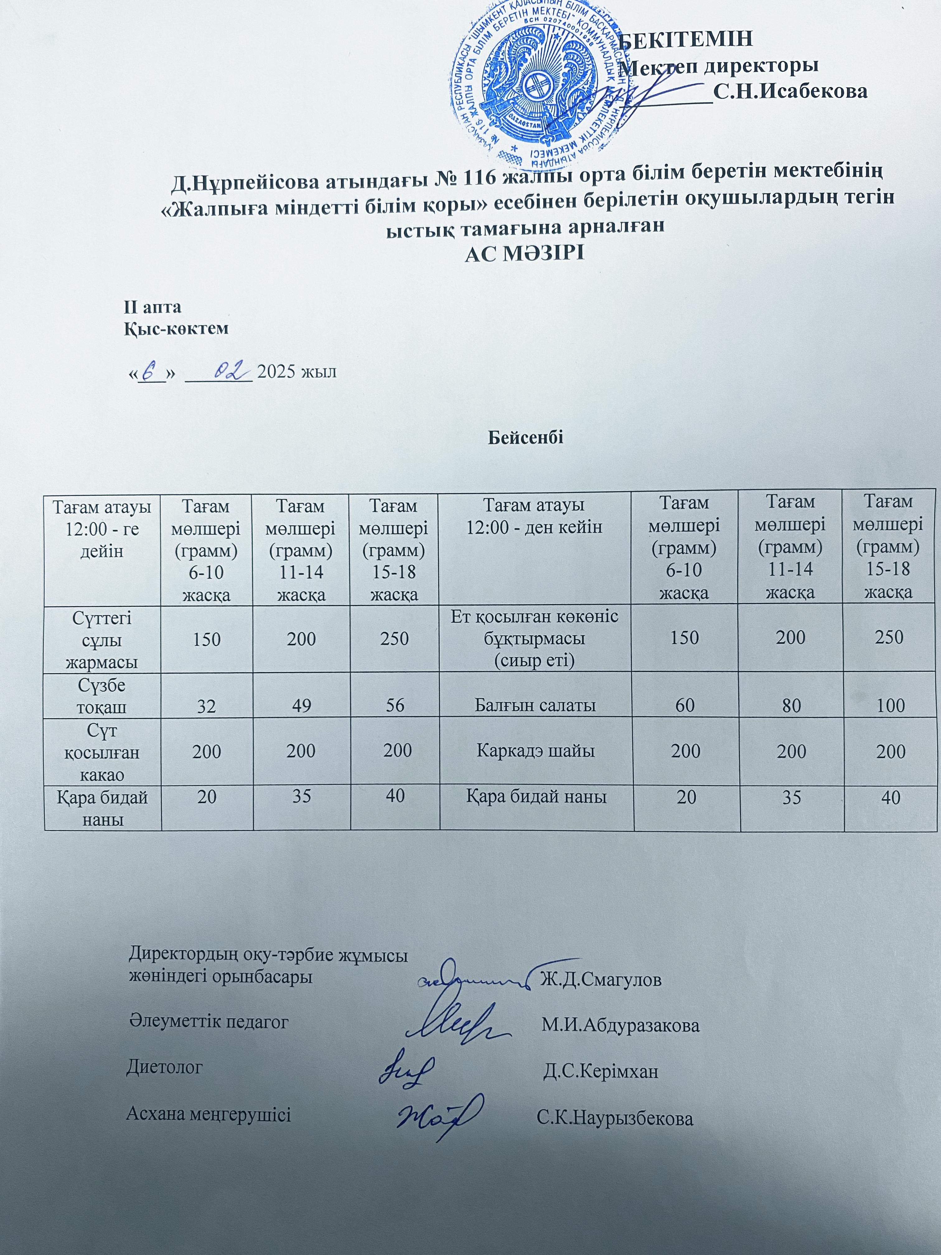 Ас мәзірі » «Д.Нұрпейісова атындағы №116 жалпы орта білім беретін мектебі» КММ