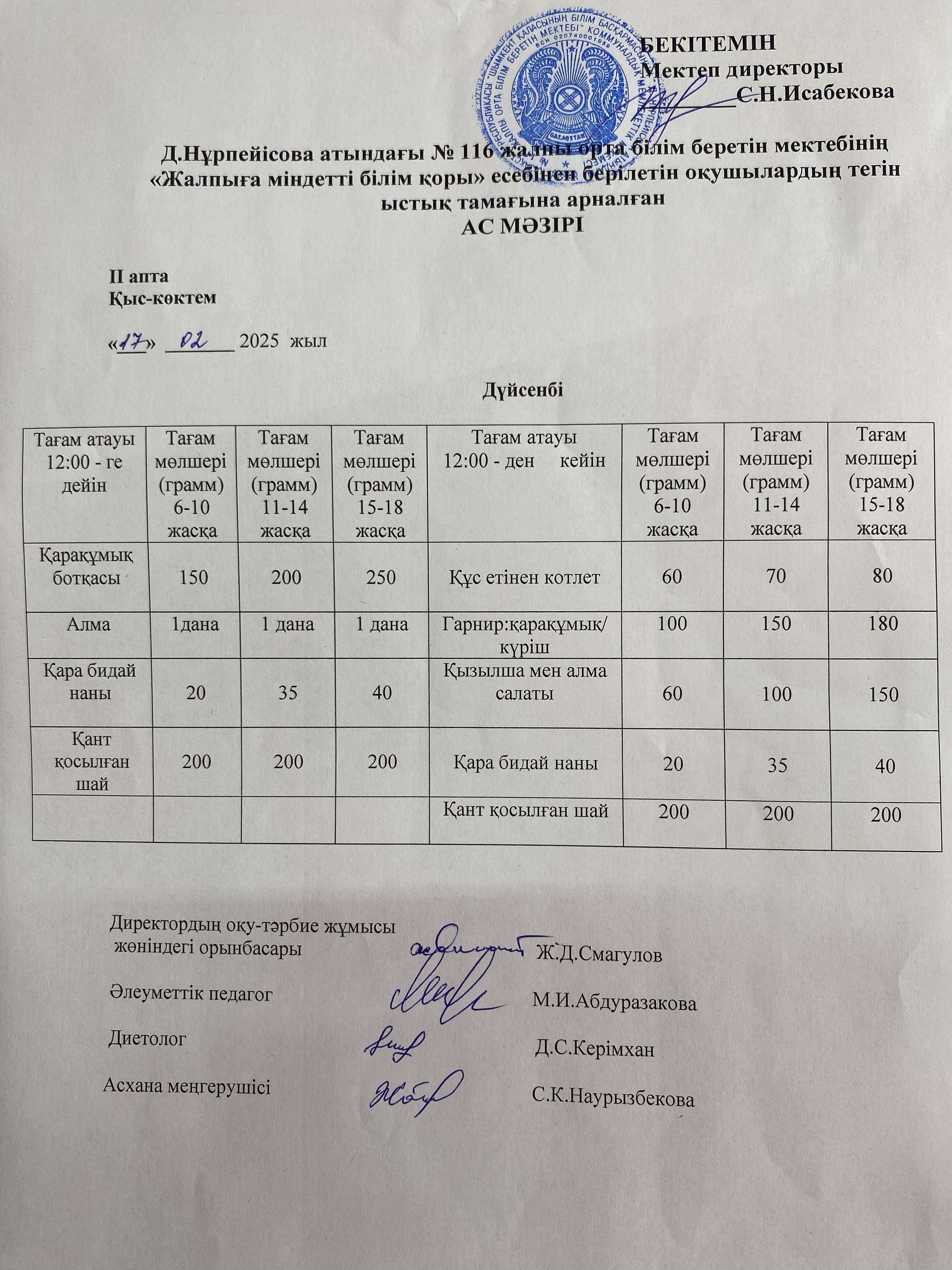 Ас мәзірі » «Д.Нұрпейісова атындағы №116 жалпы орта білім беретін мектебі» КММ