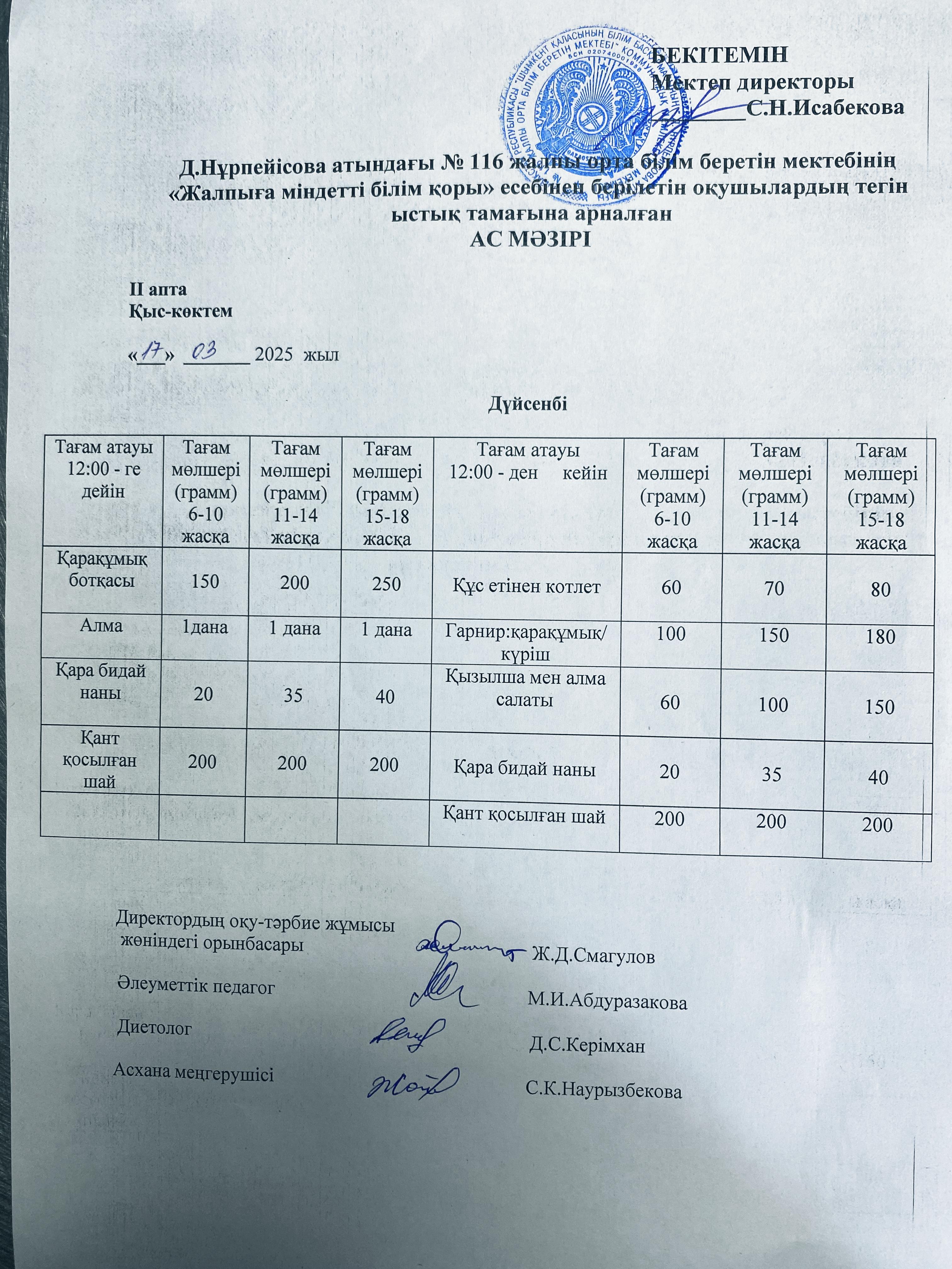 Ас мәзірі » «Д.Нұрпейісова атындағы №116 жалпы орта білім беретін мектебі» КММ