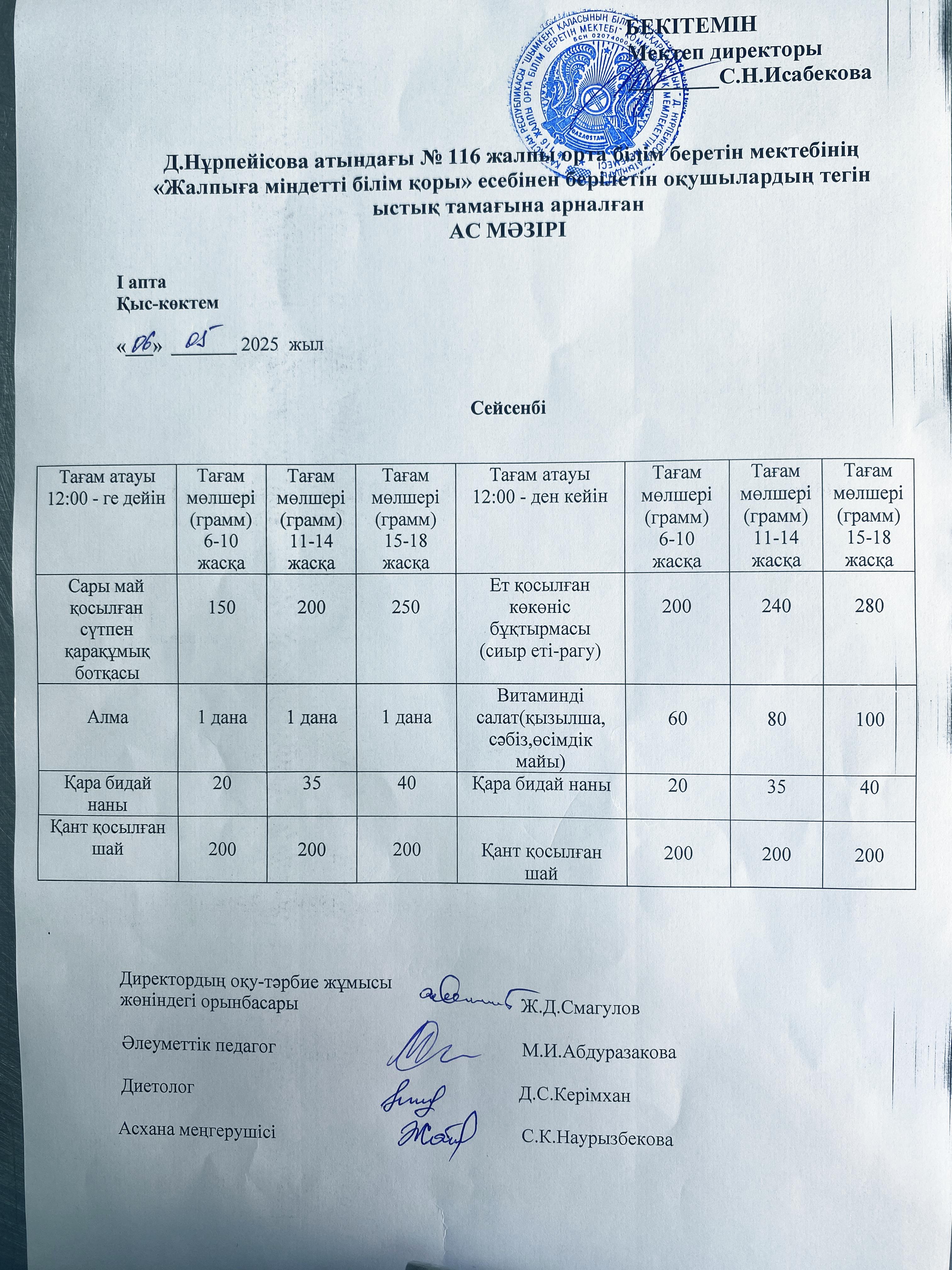 Ас мәзірі » «Д.Нұрпейісова атындағы №116 жалпы орта білім беретін мектебі» КММ